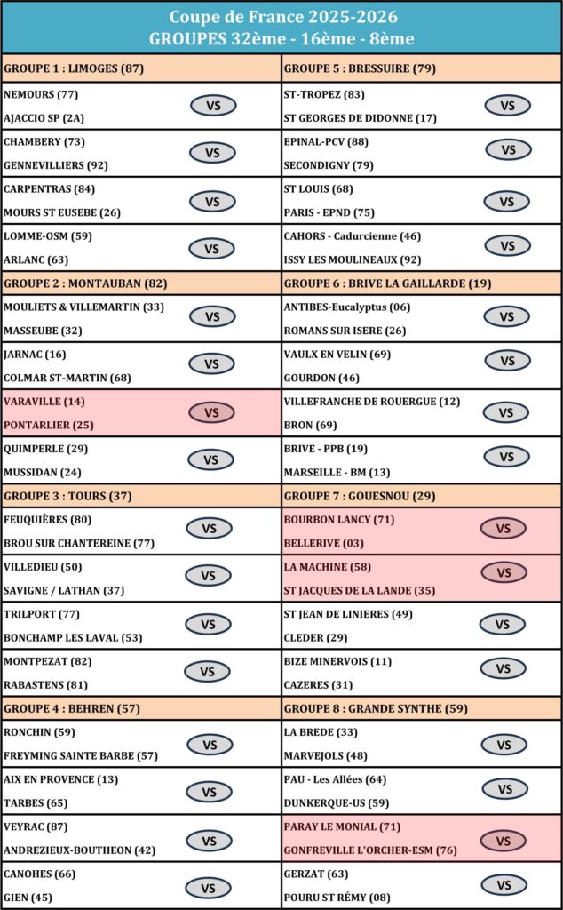 Coupe De France Saison 2025 – 2026 32ème Suivez les résultats sur FFPJP 3ème Tour de Zone 2ème Tour de Zone 1er Tour de Zone