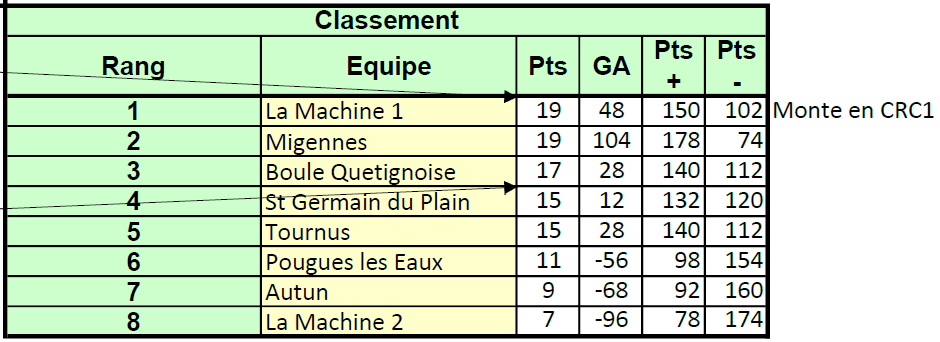 | Boule Quetignoise | St Germain du Plain | 28 | 8 |