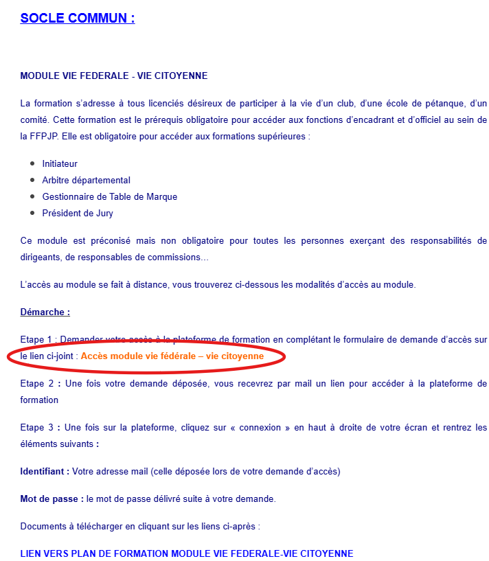 Inscription module « Vie Fédérale – Vie Citoyenne » en cliquant sur ce lien vous obtiendrez la page ci-dessous avec les modalités d’inscription.