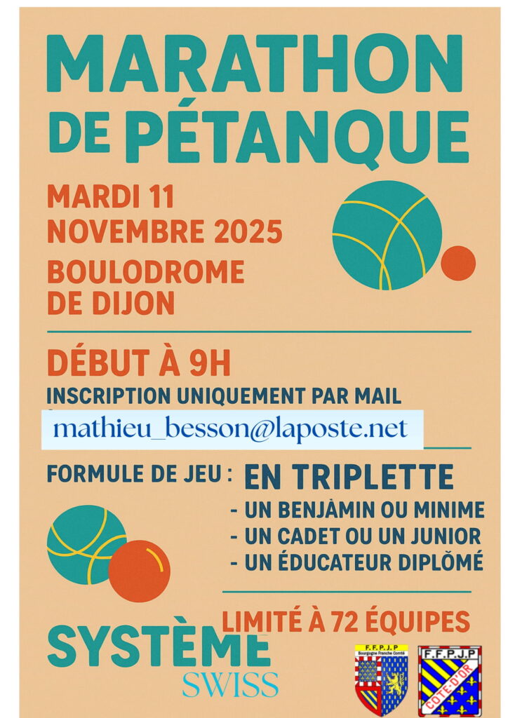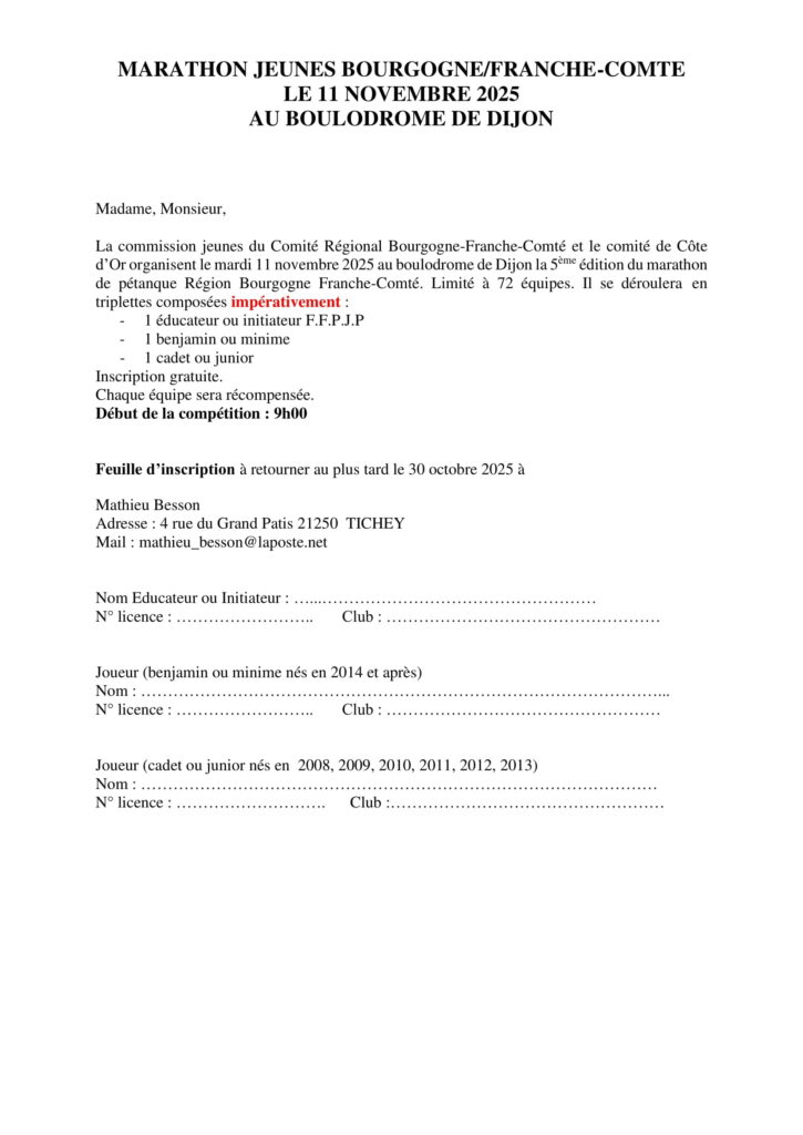 Marathon Jeune – Dijon – 11 novembre 16 octobre 2025 ffpjp BFC Divers 0 Inscription avant le 30 octobre. Bulletin d’inscription et réservation repas à télécharger en PDF ou Word